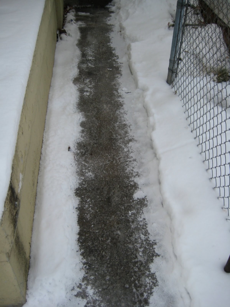 Yes, that is my welcome mat frozen in neck-breaking ice. In fact, my whole front porch is covered in one solid sheet of ice, and it's not very thin ice, either: